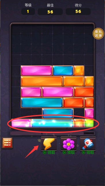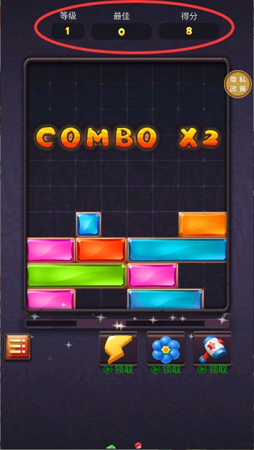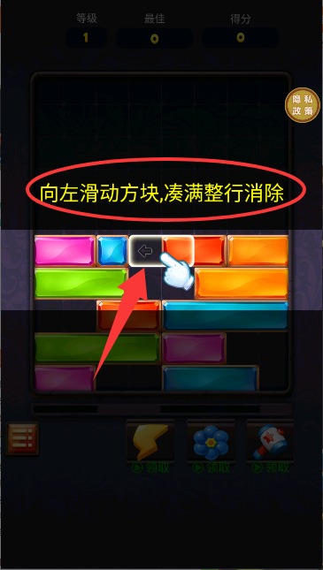 1、进入游戏后使用手指左右滑动,精准控制方块移动位置,熟悉基础操作要领。