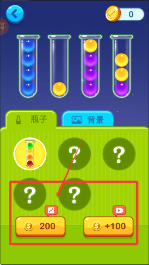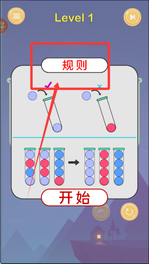 1、玩家需要观察屏幕上的球体和容器颜色分布,通过拖拽操作将相同颜色的球归位到对应容器中完成关卡目标。