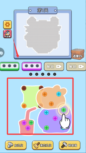 3、随着关卡推进会解锁更多角色和图案,遇到难题时可尝试更换界面布局。及时领取通关奖励,用于解锁新主题和提升体验感。