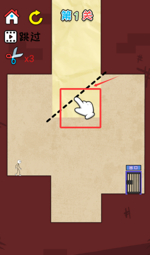 2、跟随手指图标指引,按虚线路径移动火柴人。