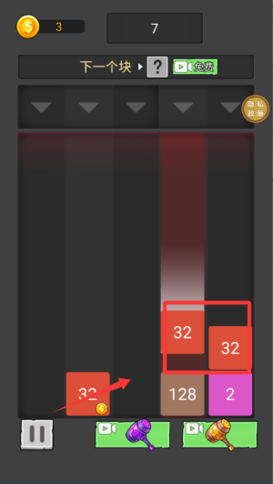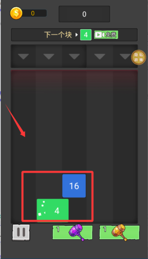 1、数字合成环节,通过触控操作移动下落的数字方块。当两个相同数字相邻时自动合并升级,目标是在有限空间内创造最大数值。
