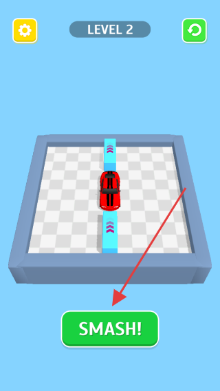 2、观察红色汽车与蓝色方块布局,直接点击【SMASH!】,让汽车沿蓝色方块路径移动,撞击目标。