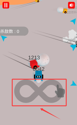 3、操控蓝车撞击雪球,消灭敌人得分。