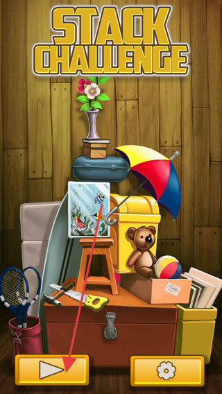 1、主界面点击【开始】按钮,进入游戏,需将杂乱物品(如球拍、画架)合理堆叠,开启趣味堆叠挑战,考验平衡与规划。