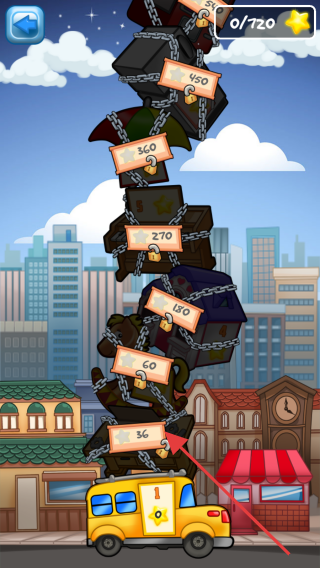 2、对局中,瞄准箭头指向的箱子(标有数字),点击放置,逐步堆叠,注意重量和重心,避免倒塌,累积高度,达成目标星星数。