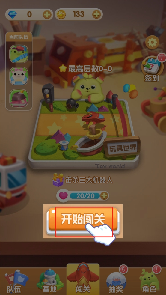 2、进入关卡后,敌方角色已在前方待命,查看己方卡牌角色属性,选择合适的阵容出战,释放技能时看着萌芽熊们可爱的攻击动作很是治愈。