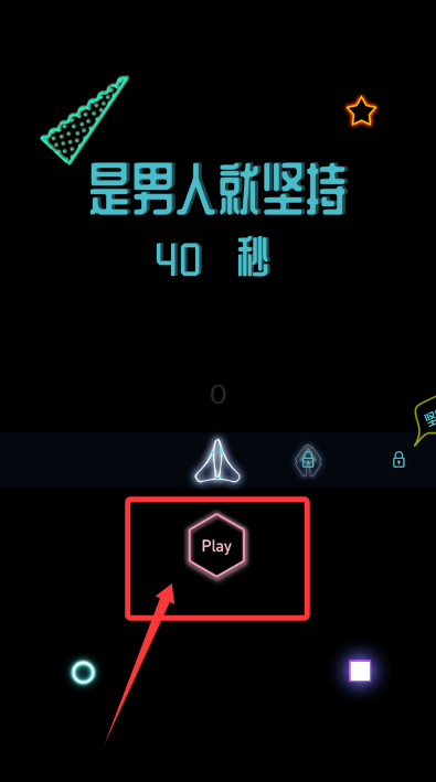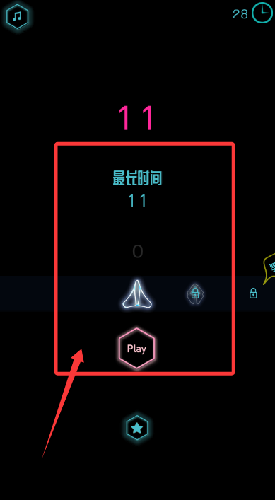 1、点击PLAY键进入极简太空,玩家将操控战机在深邃背景中急速穿行。