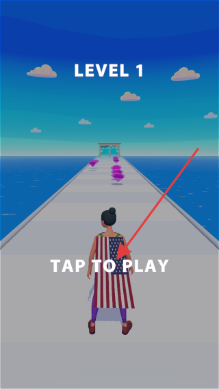 1、点击【TAP TO PLAY】,进入【LEVEL 1】,操控角色沿路径开始奔跑,向终点前进。