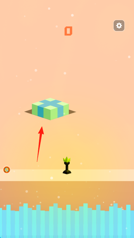 1、聚焦箭头指向的礼盒,点击该礼盒,为奖杯赋予明确的弹跳目标,让奖杯进入待启动状态,做好弹跳前的准备工作。