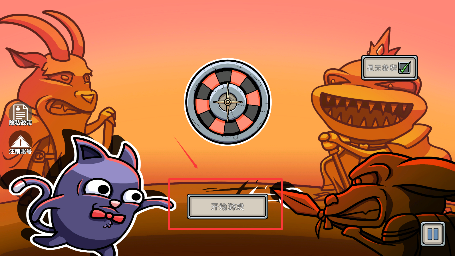 1、点击红色框框的开始游戏。