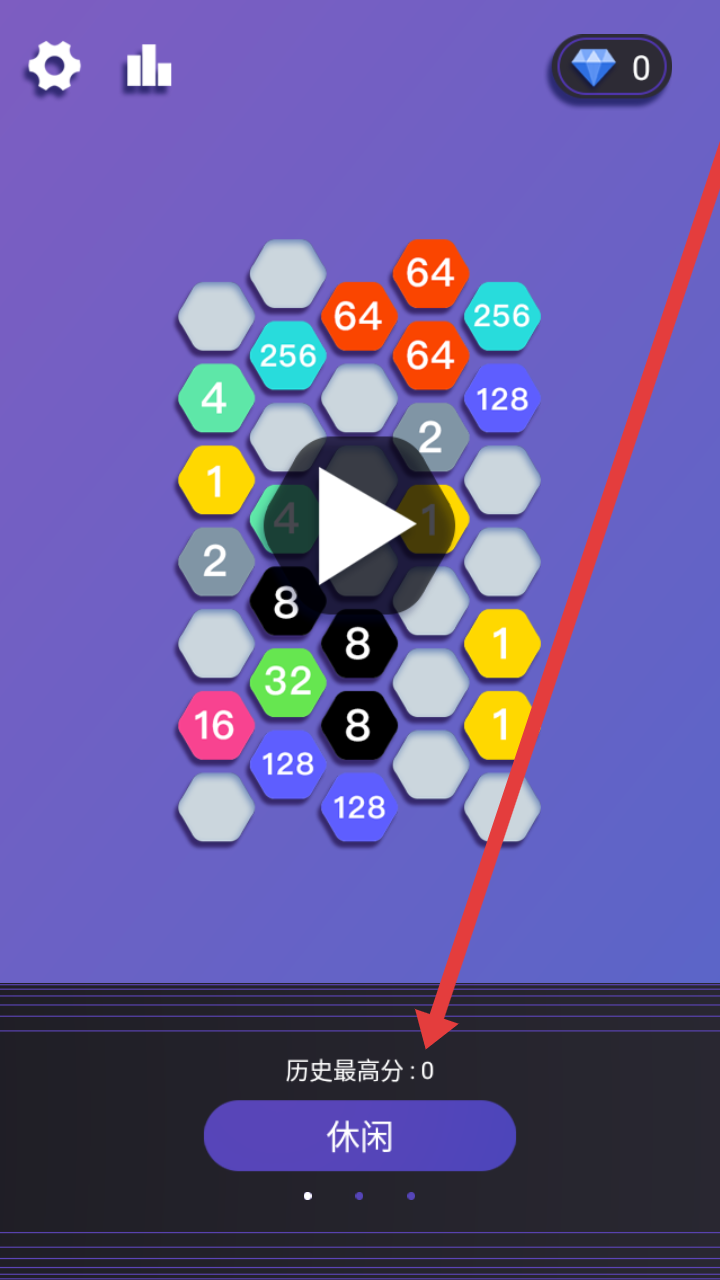 1、进入六边连接游戏,点击底部紫色【休闲】按钮,以休闲模式开启六角数字合并冒险,挑战高分。