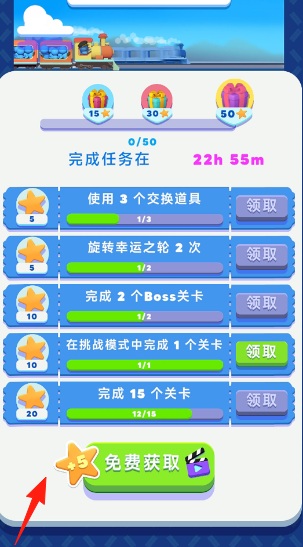 2、查看各类任务明确任务要求后,回到消除关卡,针对性地进行操作,比如为完成“使用3个交换道具”任务,在合适时机使用交换道具。
