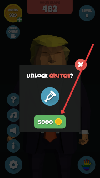 3、达到Level-8,消耗5000金币,点击【5000】按钮,解锁“CRUTCH”道具,扩展游戏玩法,增强互动性。