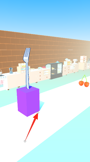 1、进入游戏首图,聚焦紫色方块上的叉子,依据箭头指示方向,通过滑动或点击屏幕,操控叉子沿轨道开始移动,熟悉基础移动逻辑,为承接食物做准备。