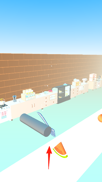 3、在第三图,叉子载着西瓜,面临圆柱等障碍,根据箭头指向,灵活调整叉子移动路径,精准躲避障碍,保持持续冲刺状态,顺利完成跑酷挑战,解锁更多趣味关卡。