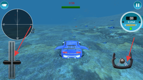 2、躲避鲨鱼袭击:在海底行驶时留意周围环境,当大鲨鱼出现时及时做出反应,通过灵活操控汽车躲避其袭击,确保自身安全以继续探险。