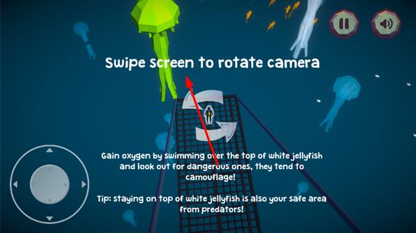 1、进入游戏,玩家化身鲨鱼置身海洋,从吞噬比自己小的鱼类开始积累能量,熟悉海域环境,开启这场猎杀与被猎杀的冒险。