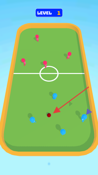 2、操控红方球员,依据箭头指引,移动球员拦截、传球,配合队友突破蓝方防线,向球门推进。
