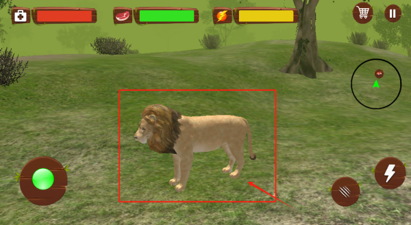 3、操控红框里的狮子进行移动,利用屏幕上的操作按钮(如攻击、跳跃、咆哮等)开展狩猎活动与地图探索,逐步熟悉狮群的生存方式。