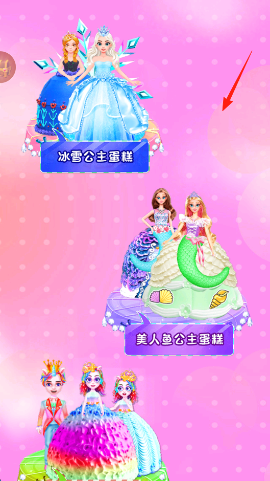 1、进入蛋糕选择界面,浏览“冰雪公主蛋糕”等主题蛋糕,点击心仪蛋糕,开启专属制作流程,需按主题定制,体验不同童话风格蛋糕的创意制作,借主题选择开启定制玩法。