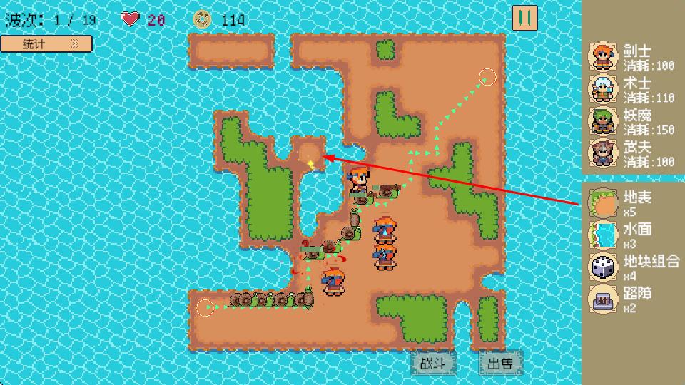 2、“地形利用”,依据地表、水面等地形,规划敌人路线,放置陷阱(路障),优化防御。