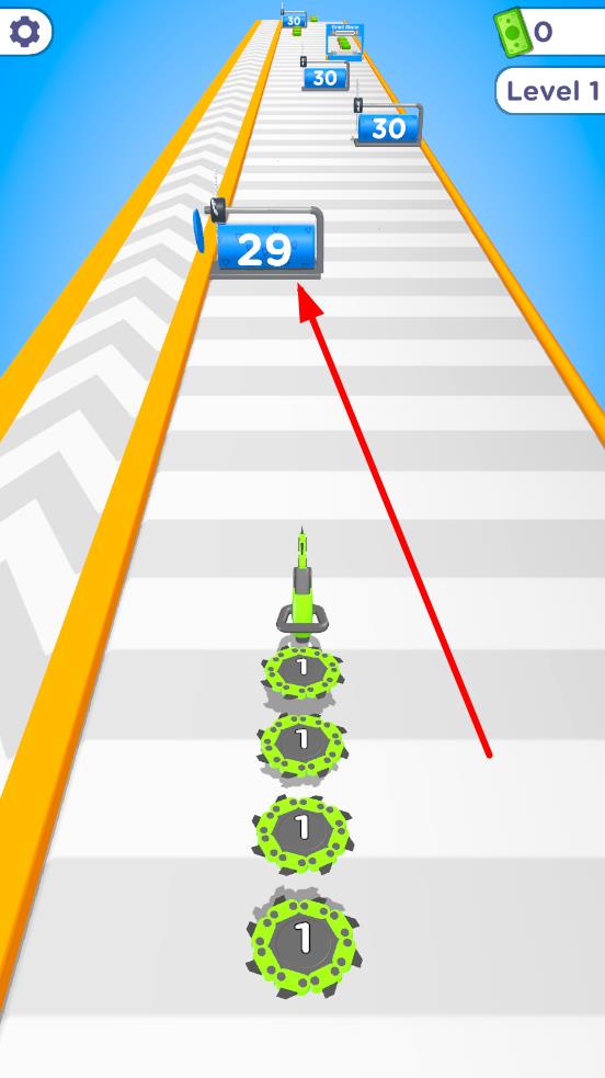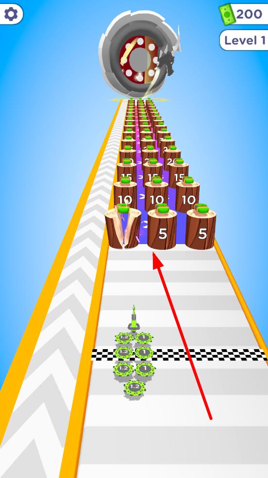 1、进入初始场景,学习滑动控制切割机移动方向、直线切割物件的基础操作,试着破坏第一个可切割道具,熟悉切割的判定范围和跑酷的节奏,获取初始的切割机皮肤奖励。