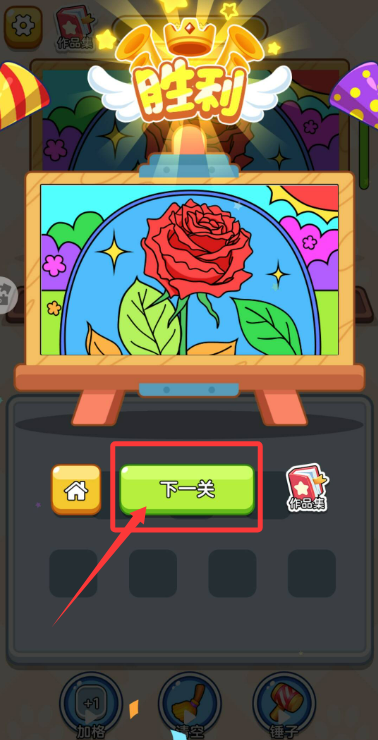 3、当所有色块填涂正确后,即可通关解锁新图案继续挑战更高难度的涂色任务。