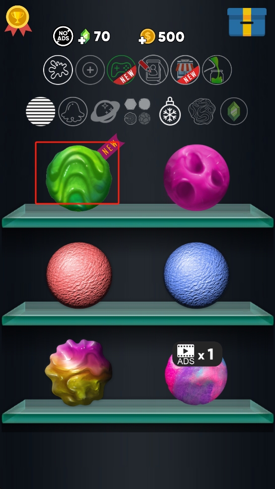 2、装饰个性软泥:使用获得的奖励解锁新颜色和装饰道具,给软泥添加闪粉、混合颜色,打造独一无二的软泥样式,让视觉体验更丰富。