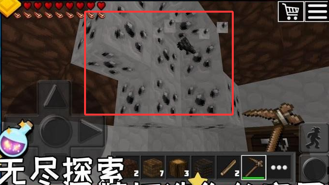 2、遇到矿物我们可以使用镐子进行挖掘。