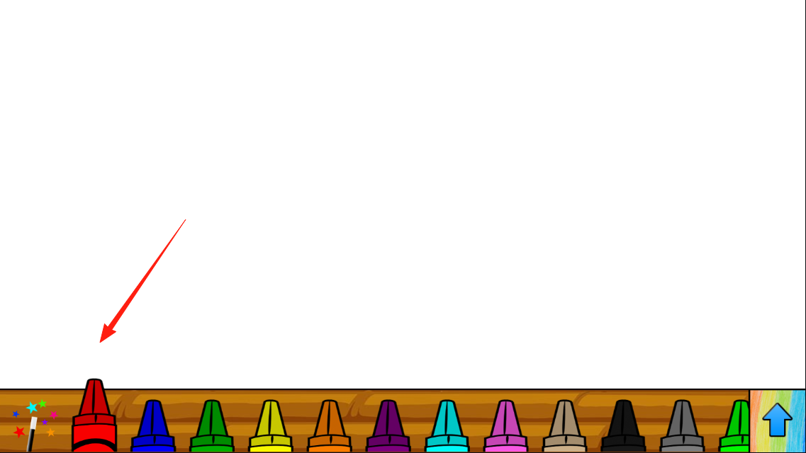 1、进入绘画界面,选择底部红色蜡笔,在空白画布上按压、滑动,就能留下红色笔迹,通过选色与绘制,自由创作图案,借色彩填充机制,开启绘画创作的基础玩法。