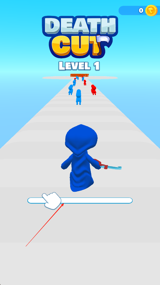 1、进入游戏后,化身为手持镰刀的死神,熟悉赛道操作方式,包括移动、挥舞镰刀等基础动作,在初始赛道中尝试收割周围人群,感受游戏的核心玩法。