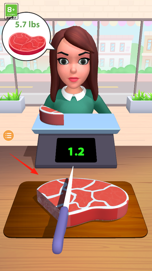 1、切割称重满足需求:确保重量符合要求,随着关卡推进,需求会越来越精准,玩家需控制好切割力度与范围,通过反复调整达成目标,锻炼精准操作能力。