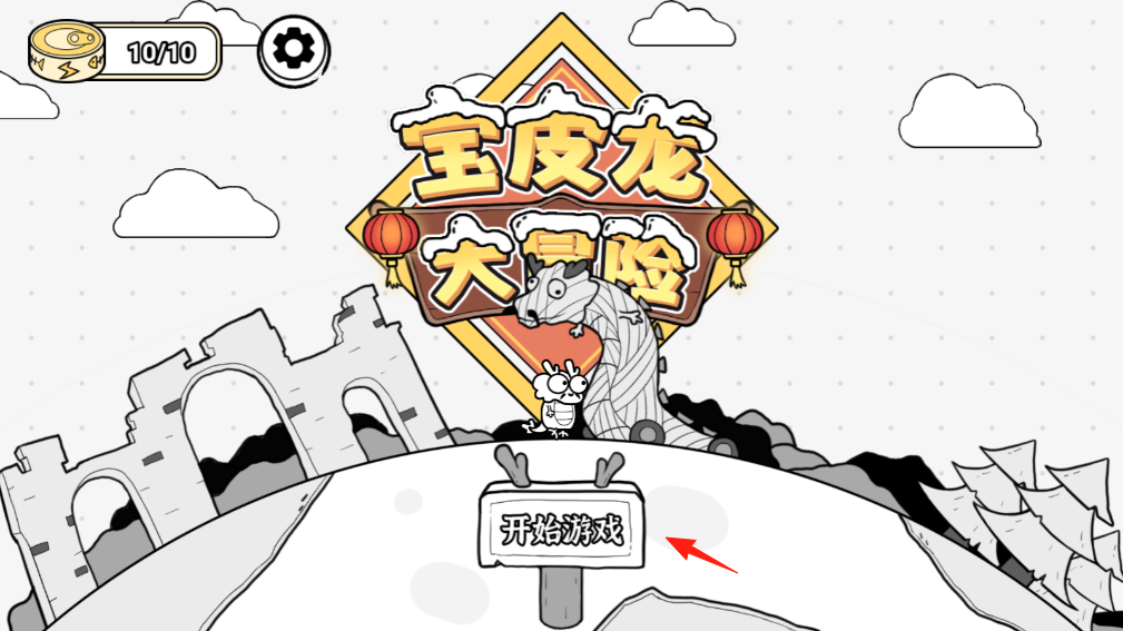 1、在主界面,点击“开始游戏”木牌,进入第1关,开启宝皮龙的冒险之旅,准备挑战关卡。