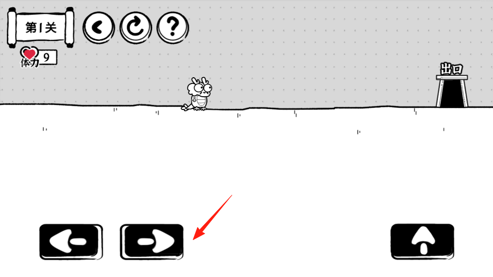 2、进入第1关,利用下方箭头按键,控制宝皮龙左右移动,规划路线,避开障碍。