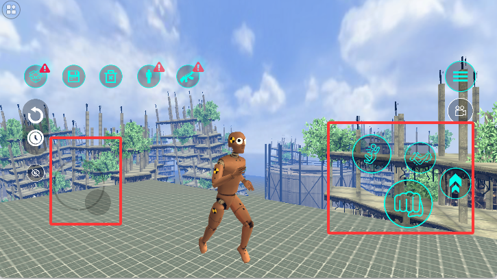 3、左下角按钮移动角色,右下角按钮控制角色进行探险。