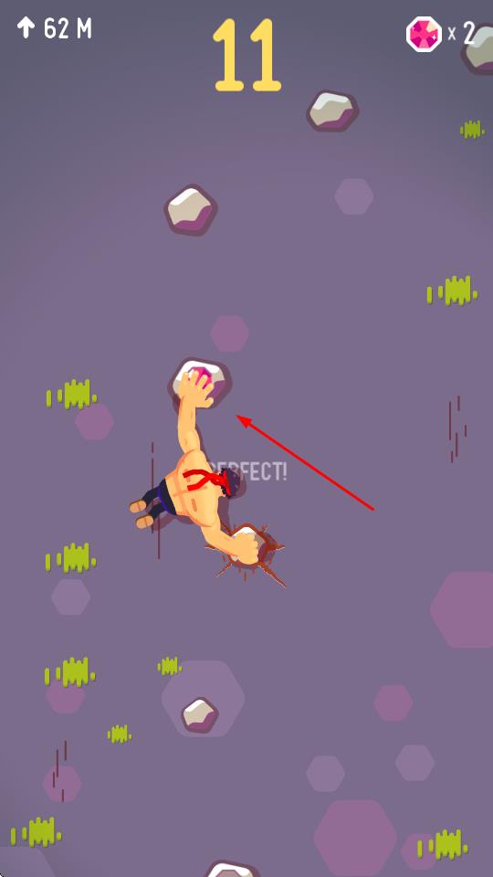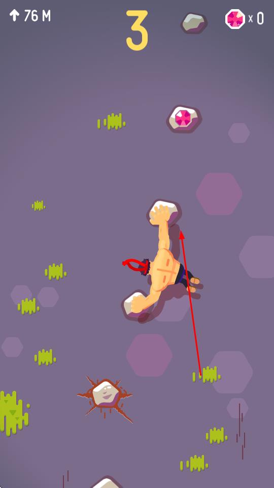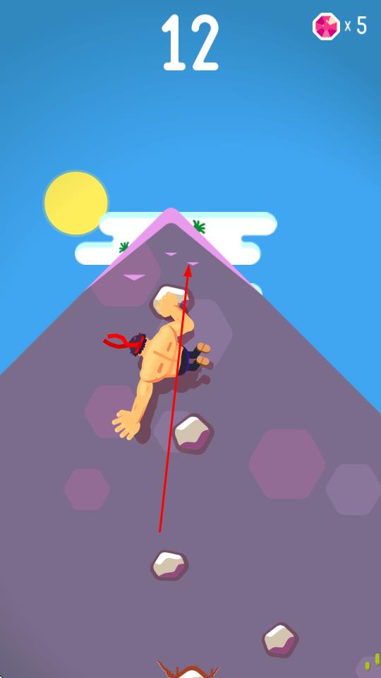 1、“角色攀爬”,操控肌肉攀爬者,点击屏幕抓取岩石,左右移动调整位置,向上攀登山体。