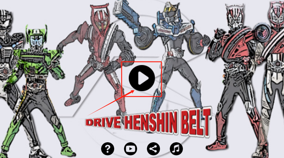 1、在角色选择界面,点击中间的“DRIVE HENSHIN BELT”按钮,即可查看变身演示视频,了解变身的基本流程与效果。