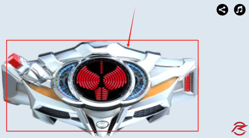 2、腰带实物展示中,红色按钮是变身启动键,点击即可开启变身程序;蓝色装饰是能量指示灯,会随着变身过程变化状态,提示变身进度。