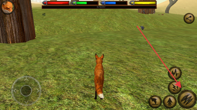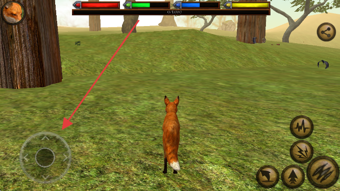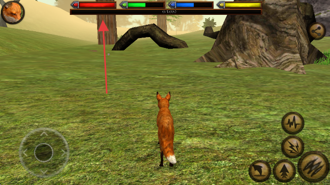 2、左侧虚拟摇杆,控制狐狸在草原场景移动(探索、避障)。