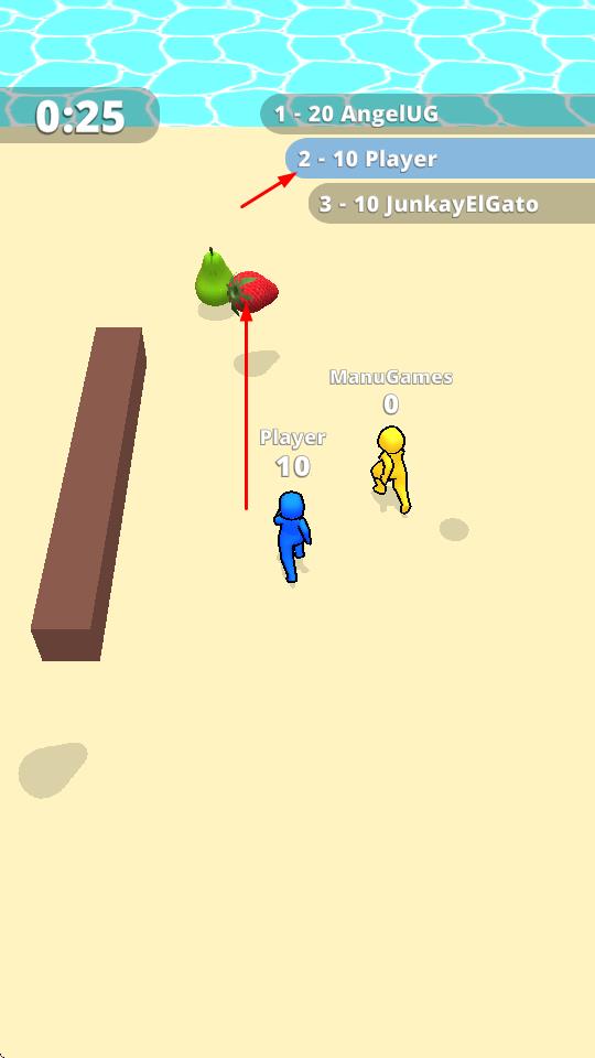 1、抢夺水果积累分数:进入场景后,控制角色移动抢夺水果,水果数量直接影响最终得分,抢得越多分数越高,过程中需灵活避开对手的干扰,优先抢夺高分值水果。