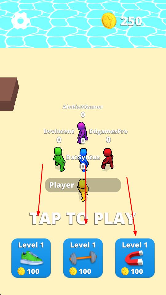 2、“道具收集”,拾取水果(草莓、梨)提升等级,收集金币(250)解锁道具(鞋子、哑铃、磁铁)。