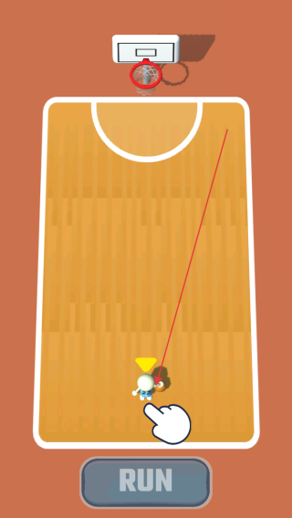 1、在初始界面点击角色,按“RUN”,操控球员运球,规划投篮路径,开始轻松愉快的游戏旅程吧。