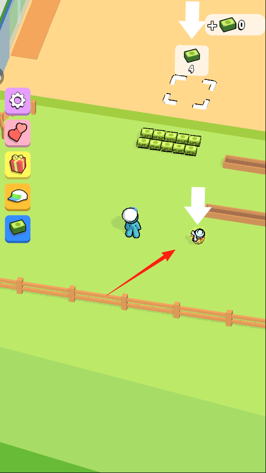 2、进入营业场景,操控蓝色角色,走向箭头指引的目标点,通过移动角色,接收或搬运货物,借路径指引机制,明确操作方向,体验场景互动玩法,感受资源收集的过程。