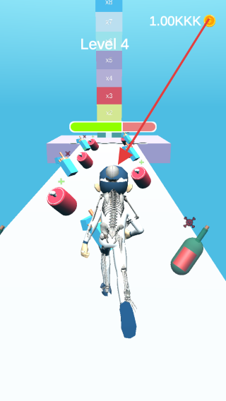 健康dna跑3d是一款以角色成长为核心的休闲跑酷项目,玩家将操控初始形态为骷髅人的角色在3D赛道上奔跑,体验独特的蜕变乐趣,赛道上分布着各类与健康相关的道具,拾取后能推动角色从骷髅状态逐步进化,长出肌肉、皮肤,最终成为有血有肉的完整形态,整个过程如同一场生动的生命成长模拟。