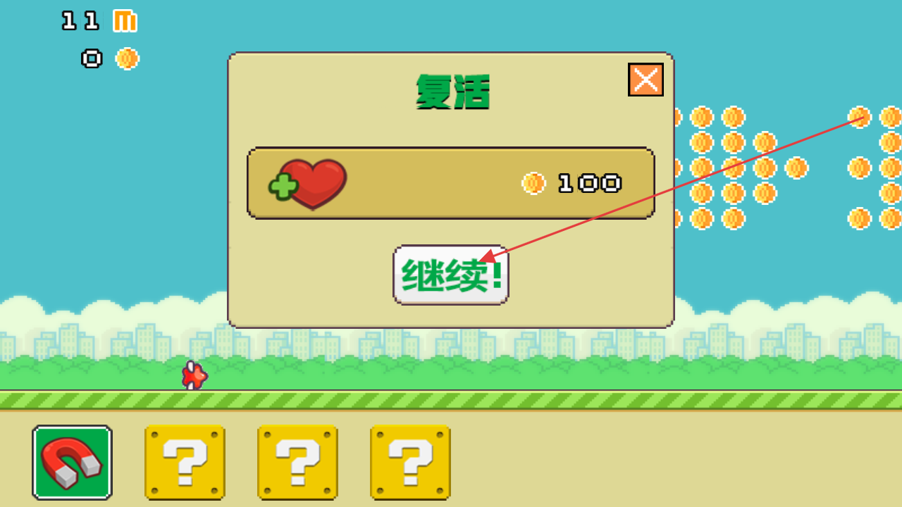 3、不断奔跑推进,积累金币解锁更多道具,提升角色能力,挑战更远距离,刷新游戏记录。