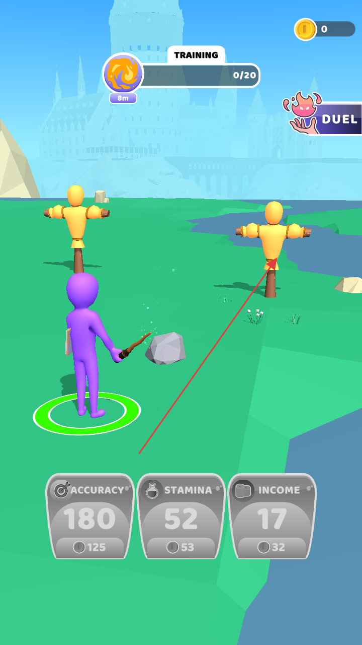 3、通过训练提升“ACCURACY(精准度)”“STAMINA(耐力)”等属性,解锁“DUEL(决斗)”模式,挑战更强敌人。