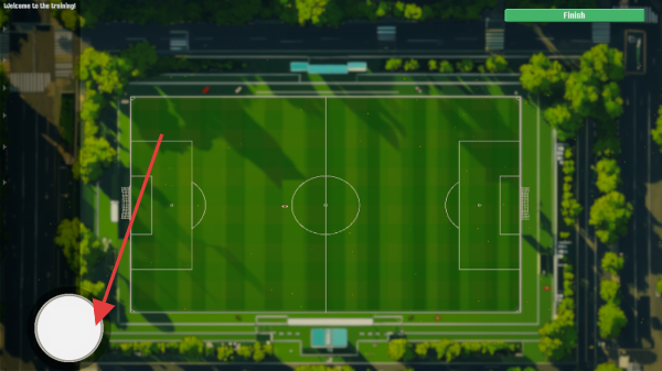 2、进入游戏后,操控左下角虚拟摇杆移动角色,在足球场场景中探索,熟悉操作方式,寻找足球或任务目标。