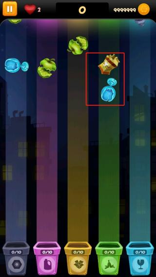 2、看到各种物品从上方落下,快速分辨其类别,拖动到对应的分类区域,注意不要放错以免影响得分。