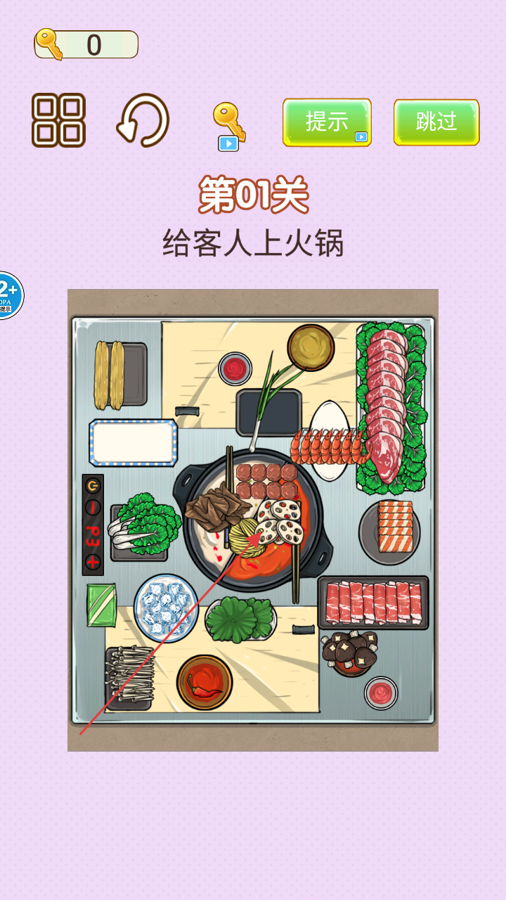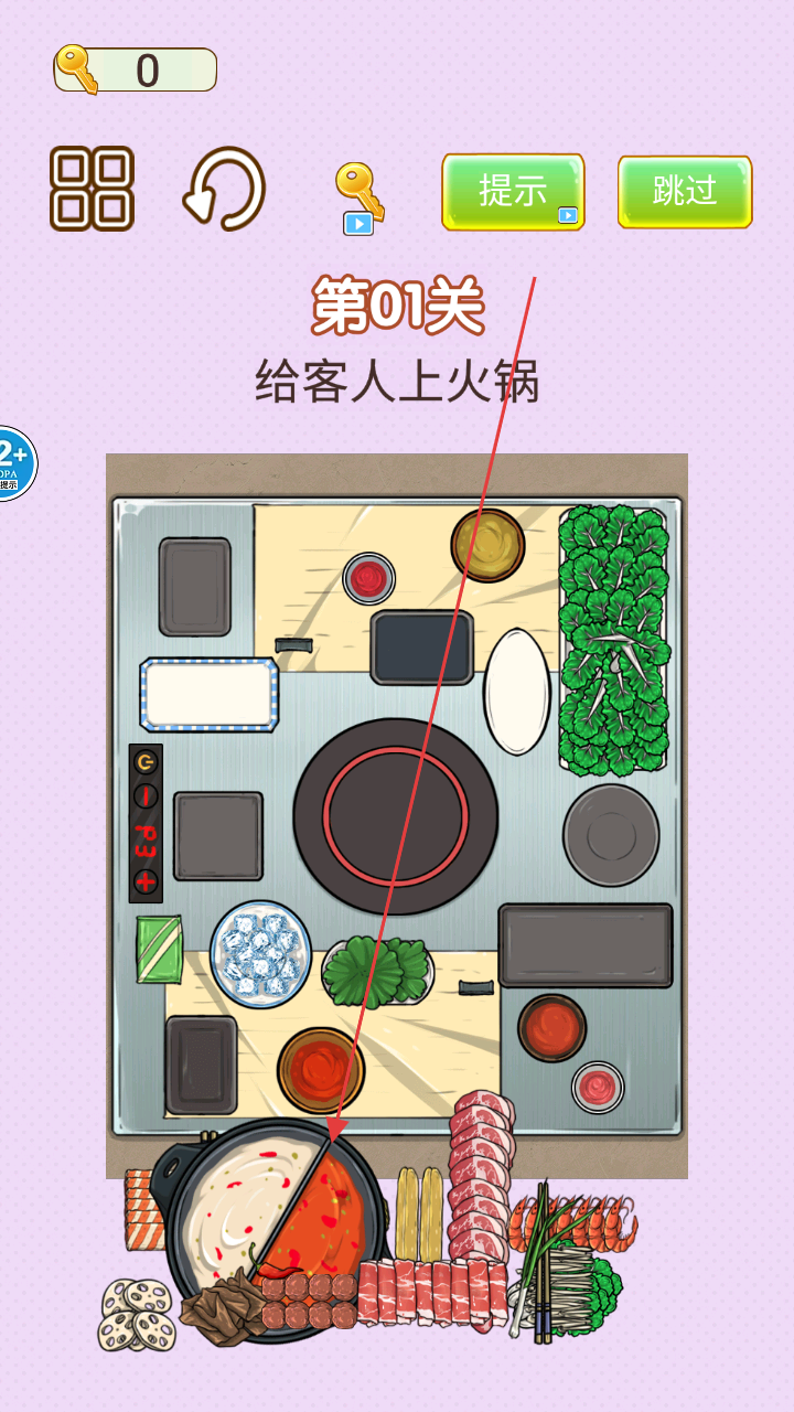 1、在主界面点击“开始游戏”,进入第 01 关“给客人上火锅”场景,开始轻松愉快的游戏旅程吧。