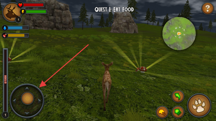 1、左侧虚拟摇杆,移动小鹿在Rewdale草原探索。